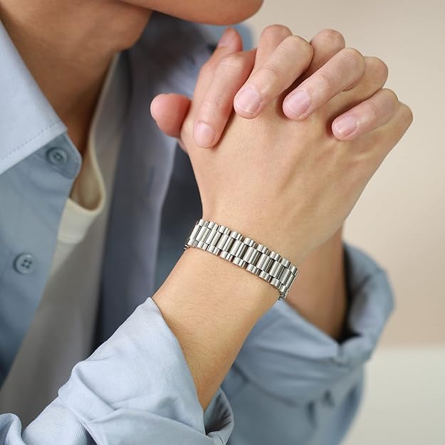 • Premium 316L Stainless Steel: Crafted from high-grade 316L stainless steel, this Silver Watch Strap Inspired bracelet ensures superior strength, anti-tarnish performance, and long-lasting shine that never fades.